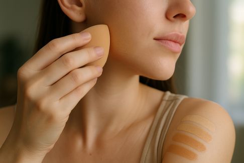 - Travaillez en mouvements circulaires ascendants, sans ajouter trop de matière, jusqu’à ce que les contours de la couleur sombre se fondent naturellement dans la peau.