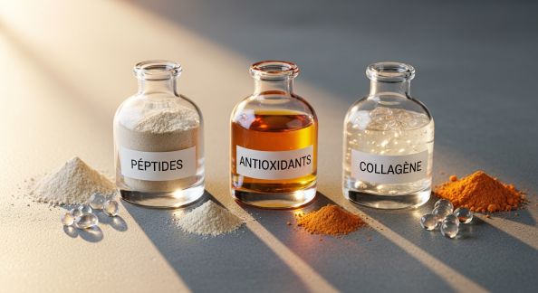 - Antioxydants : vitamine C, E, polyphénols neutralisent les radicaux libres générés par le soleil et amplifient la défense cutanée.