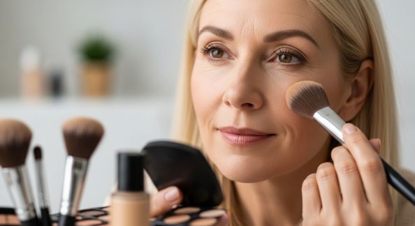 - Poudrez légèrement : une fine couche de poudre matifiante facilite l’estompage des couleurs.